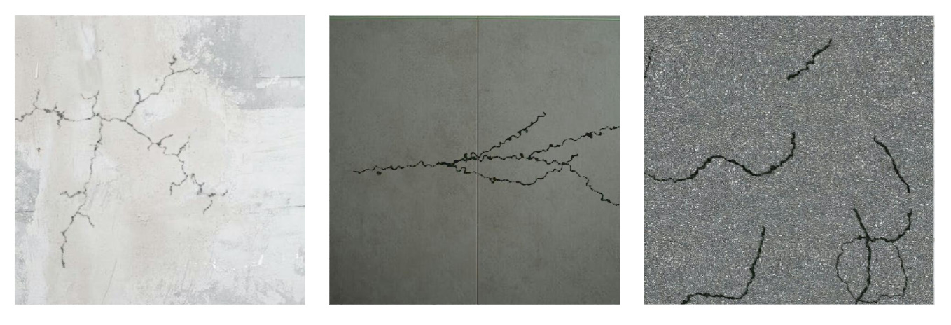Real cracks can be found in an enormous variety of patterns and environmental conditions:
